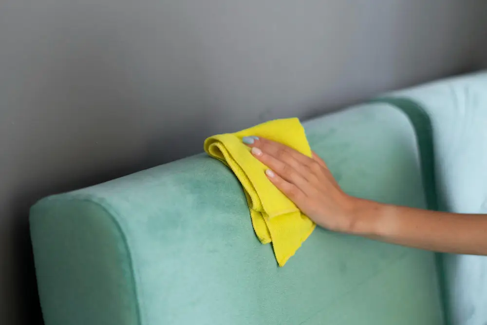 قبل استخدام أي مادة تنظيف، جرّبها على جزء صغير غير ظاهر من الكنب للتأكد من أنها لا تسبب بهتانًا في اللون.